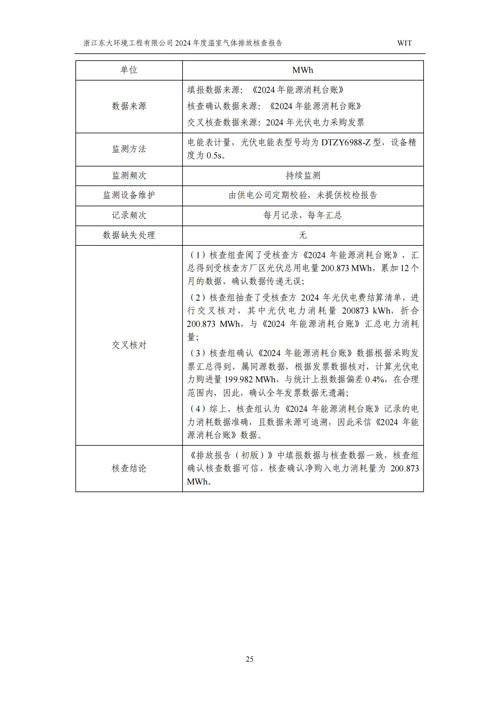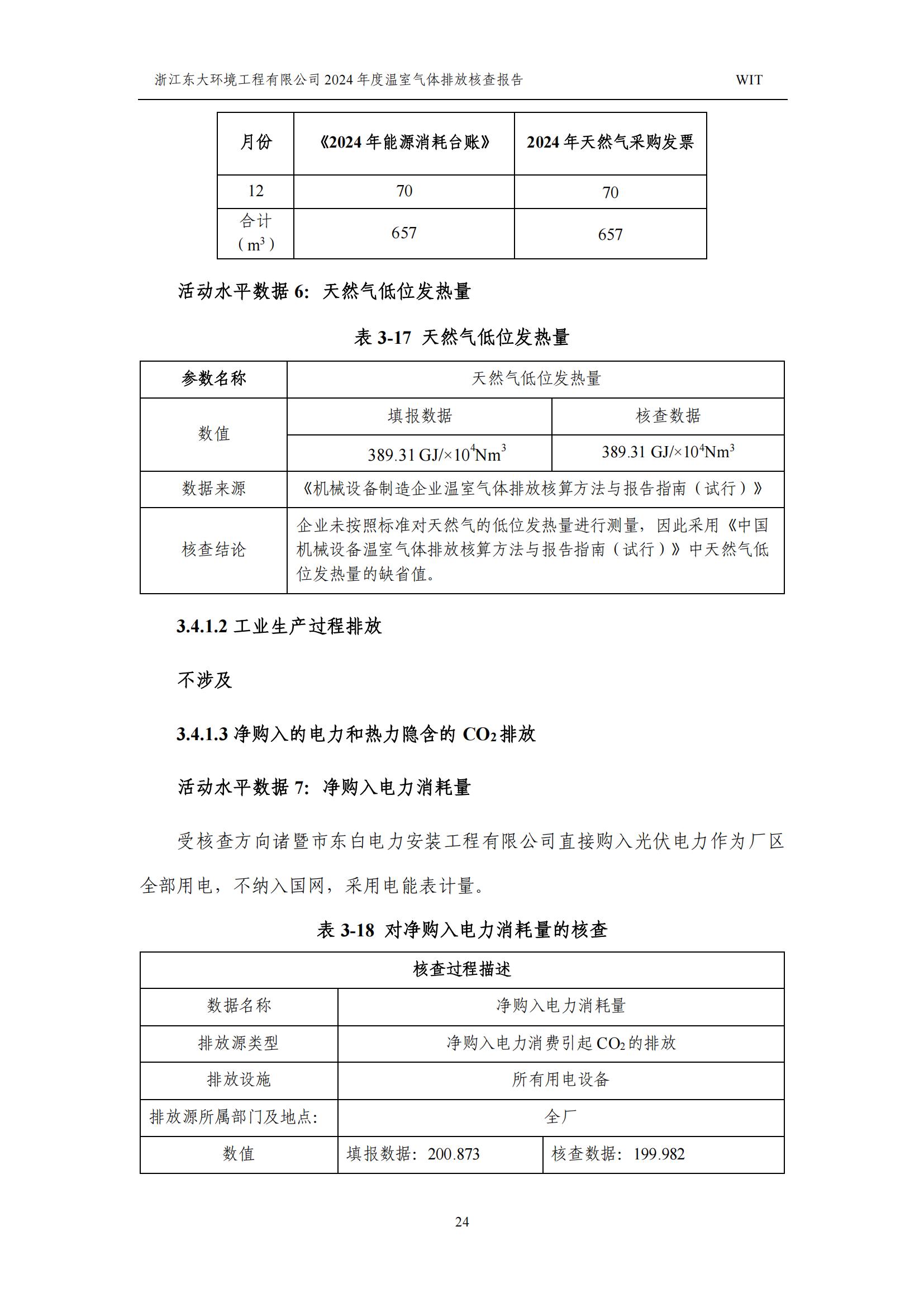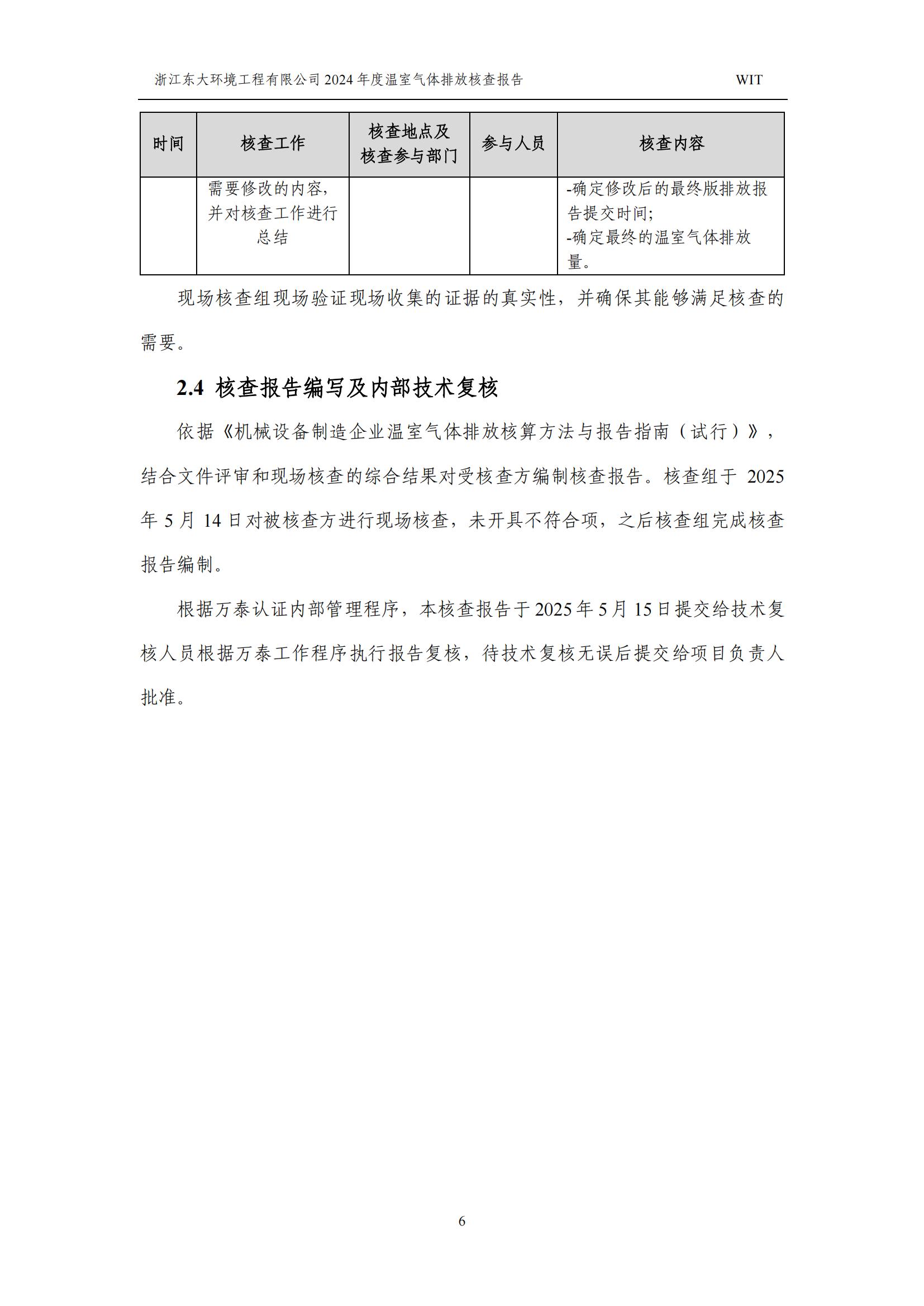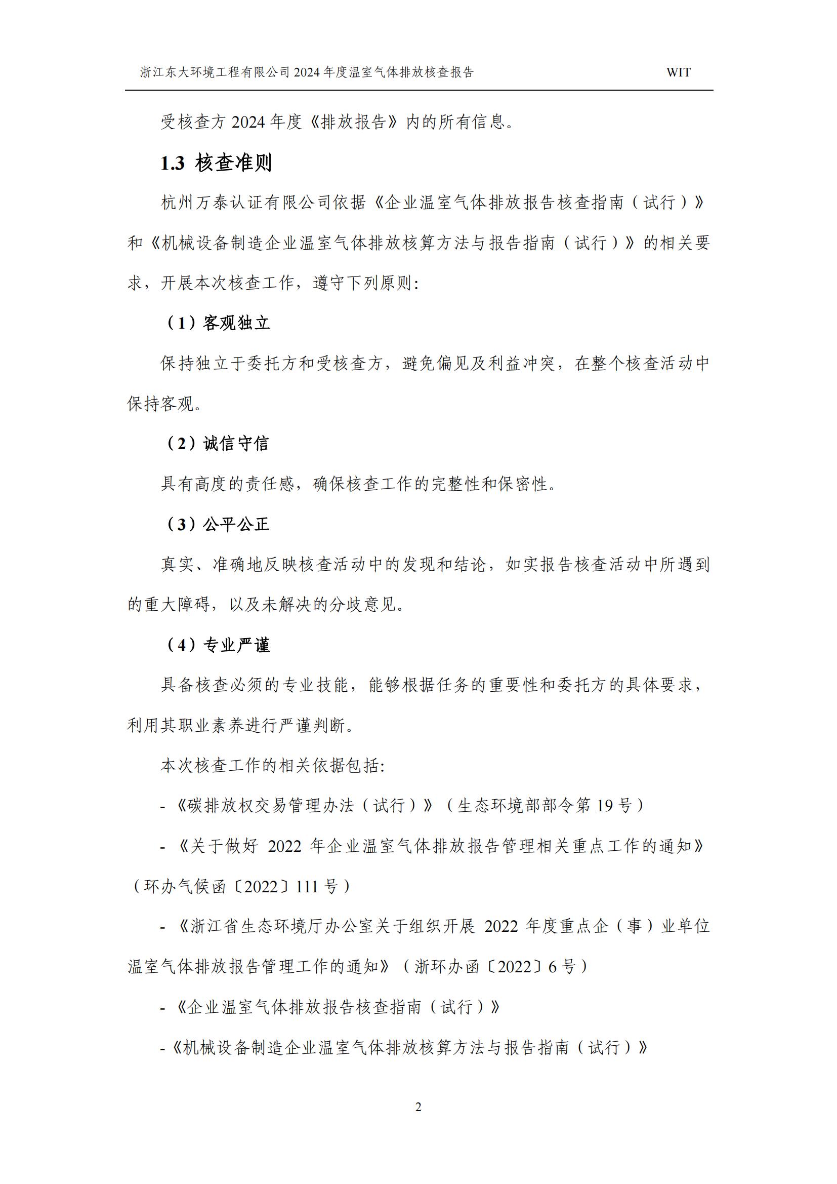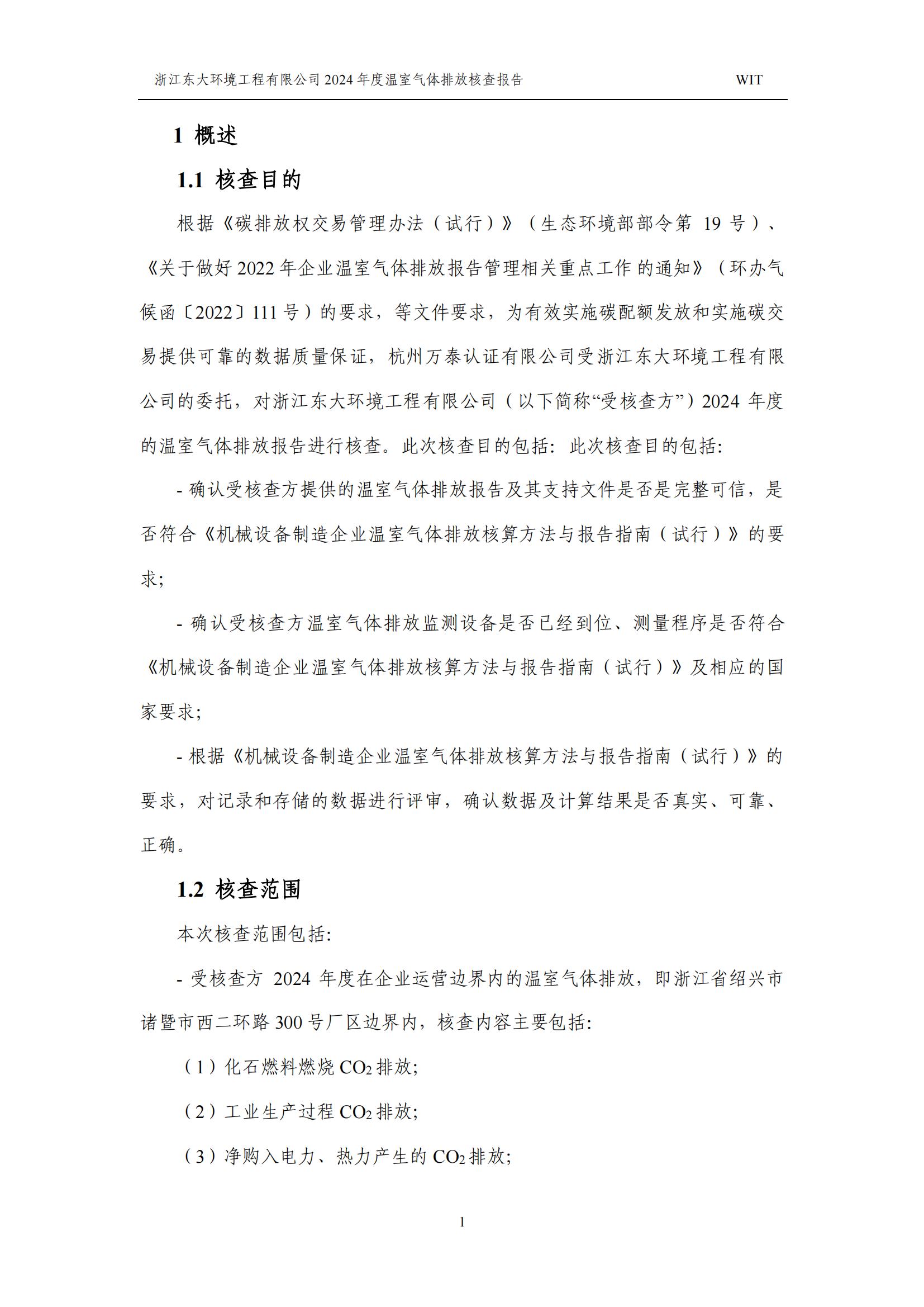 浙江東大環境工程有限公司2024年溫室氣體排放核查報告