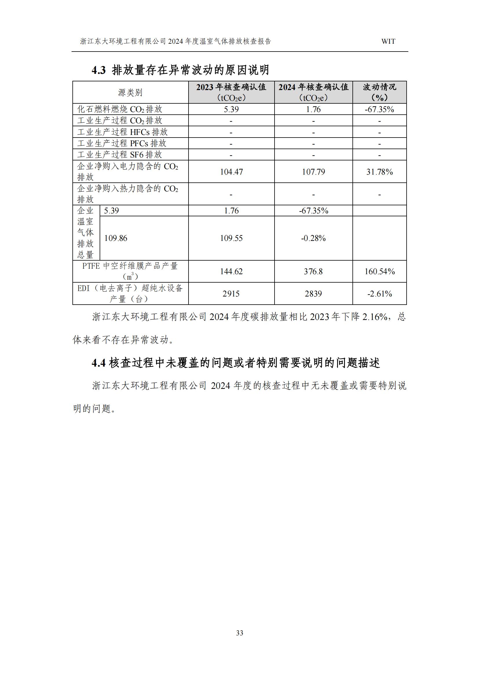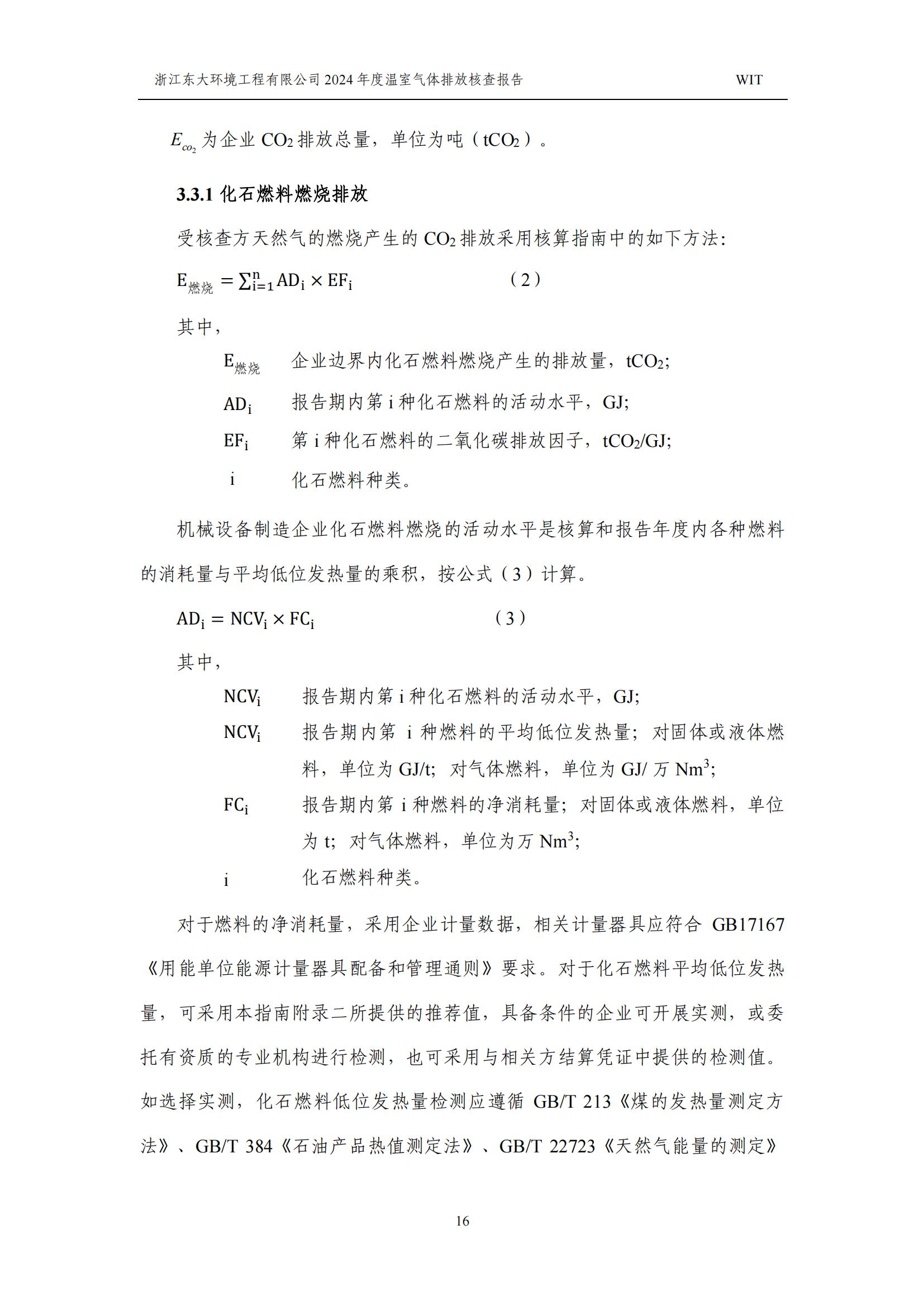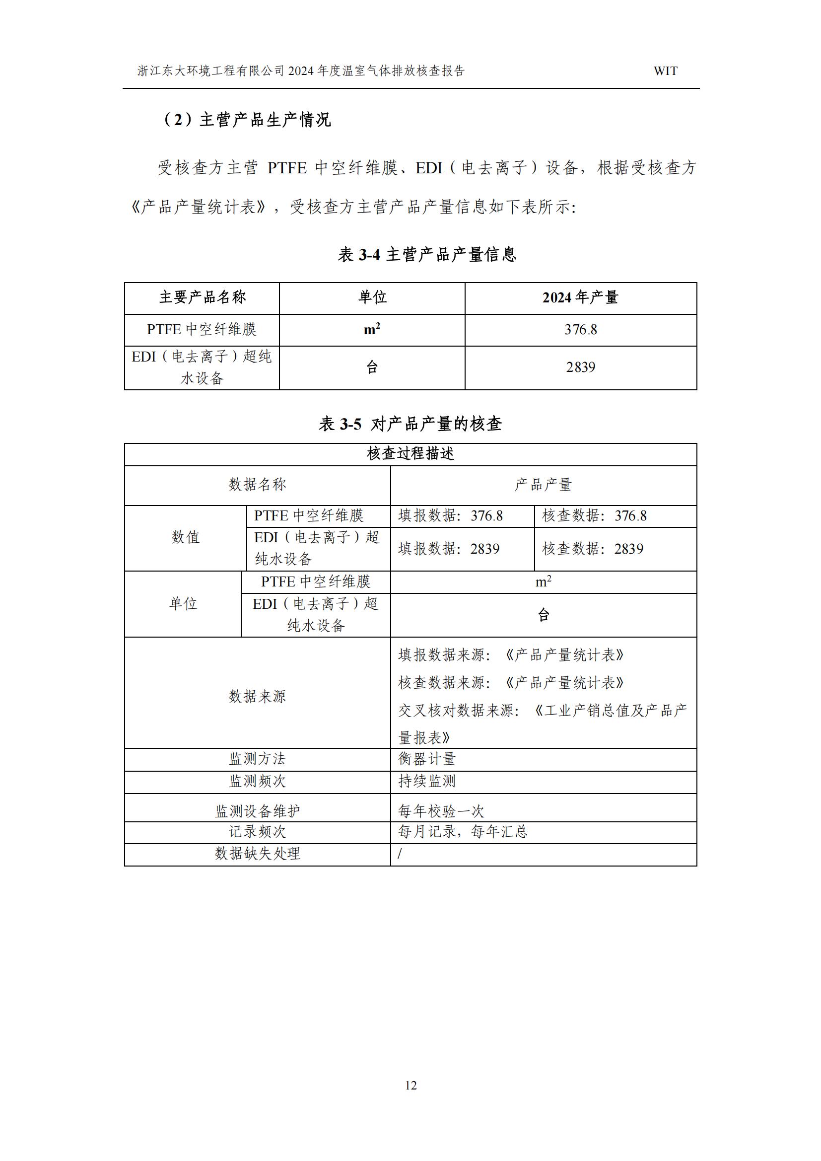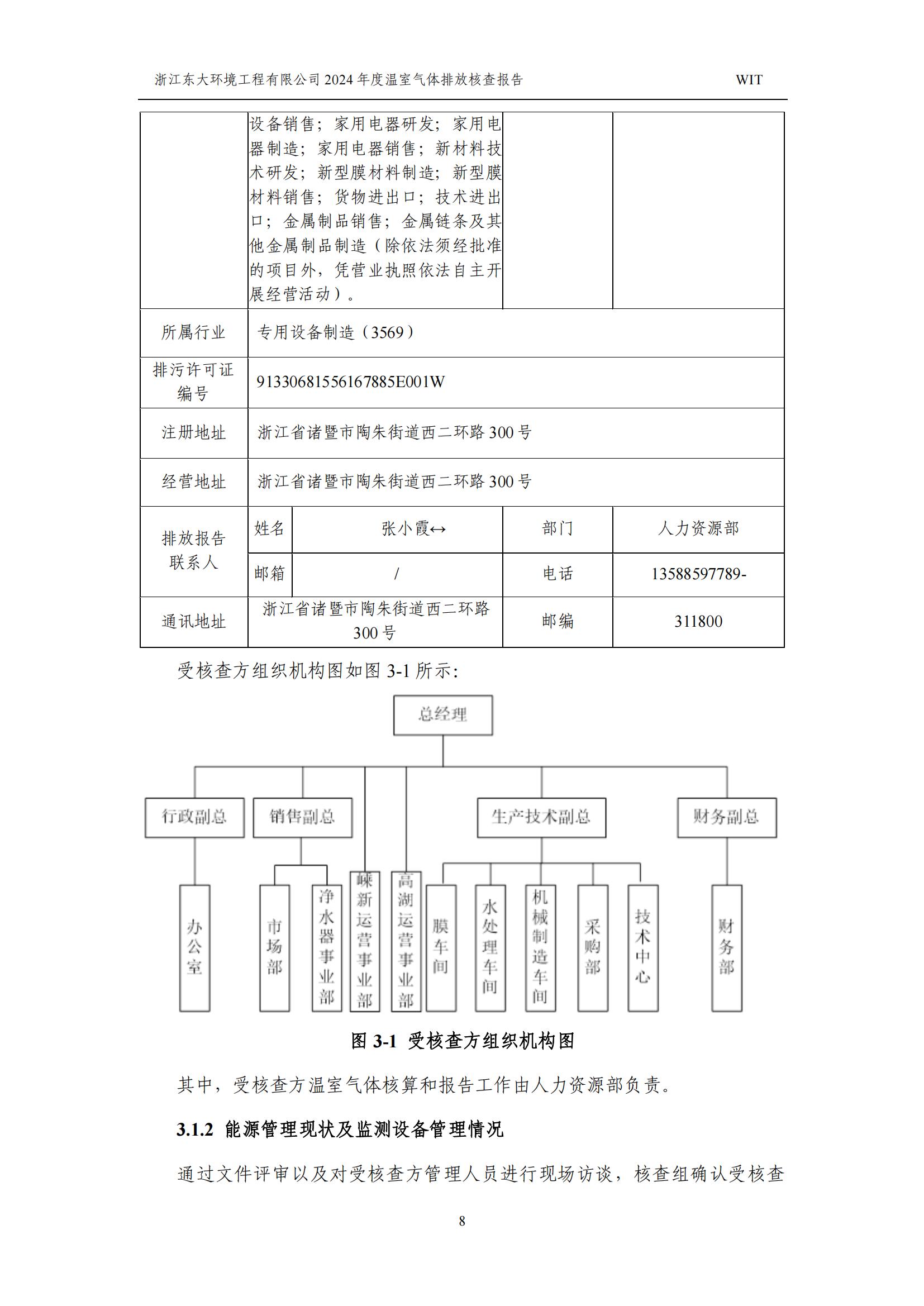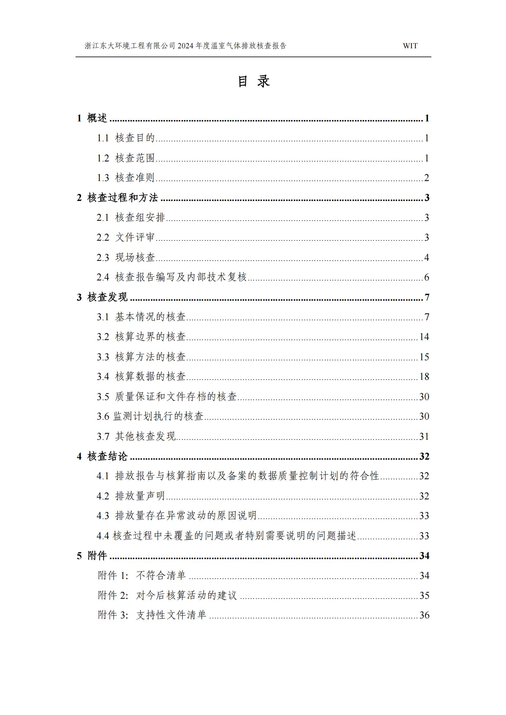 浙江東大環境工程有限公司2024年溫室氣體排放核查報告