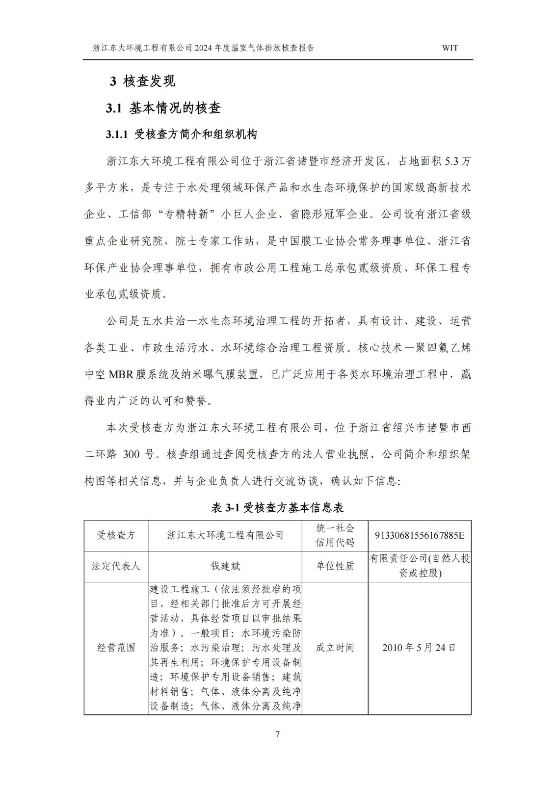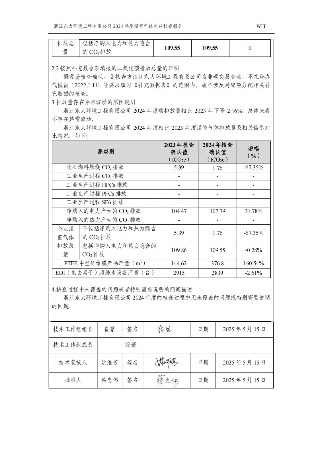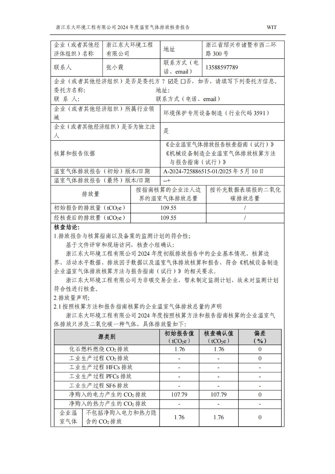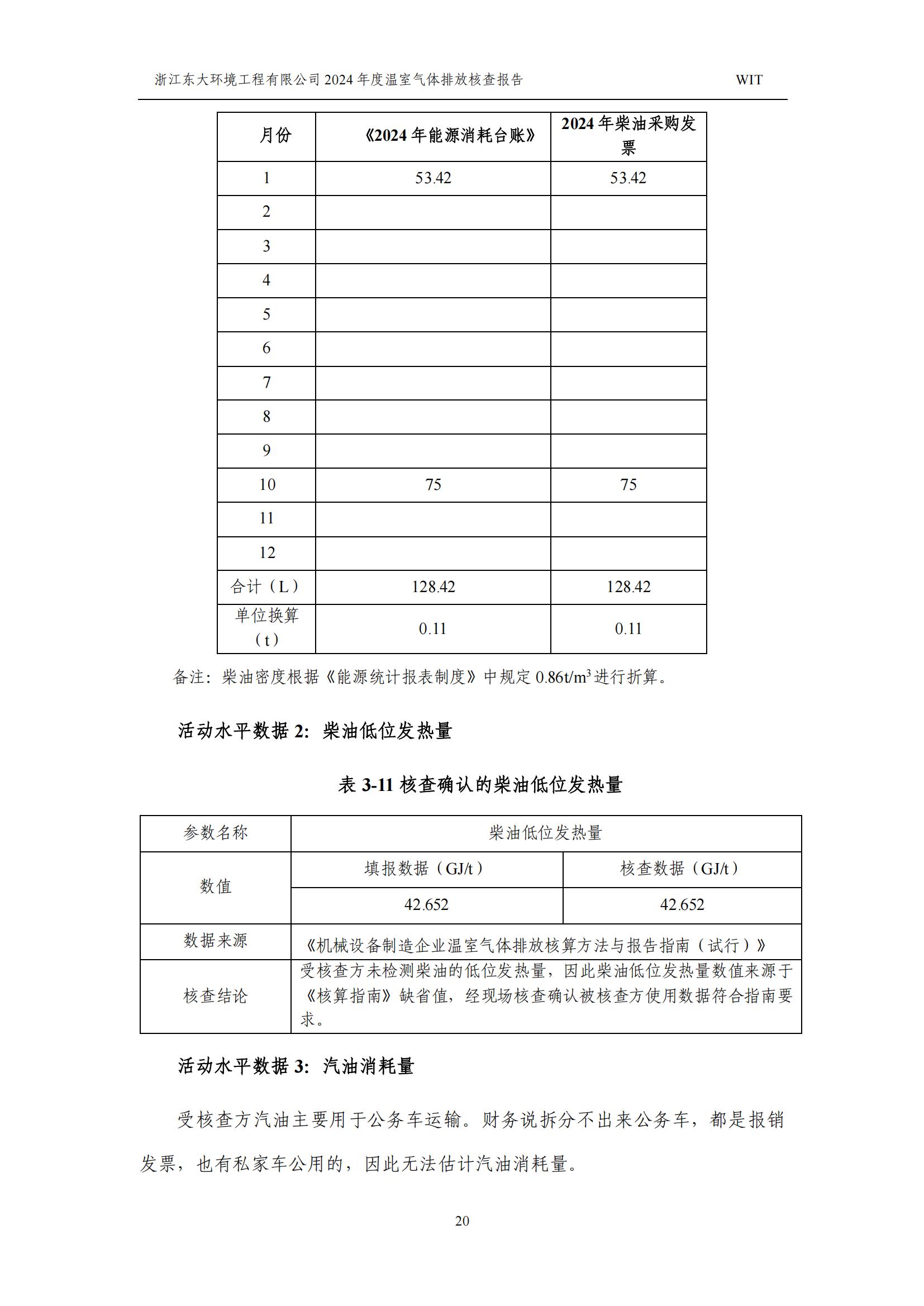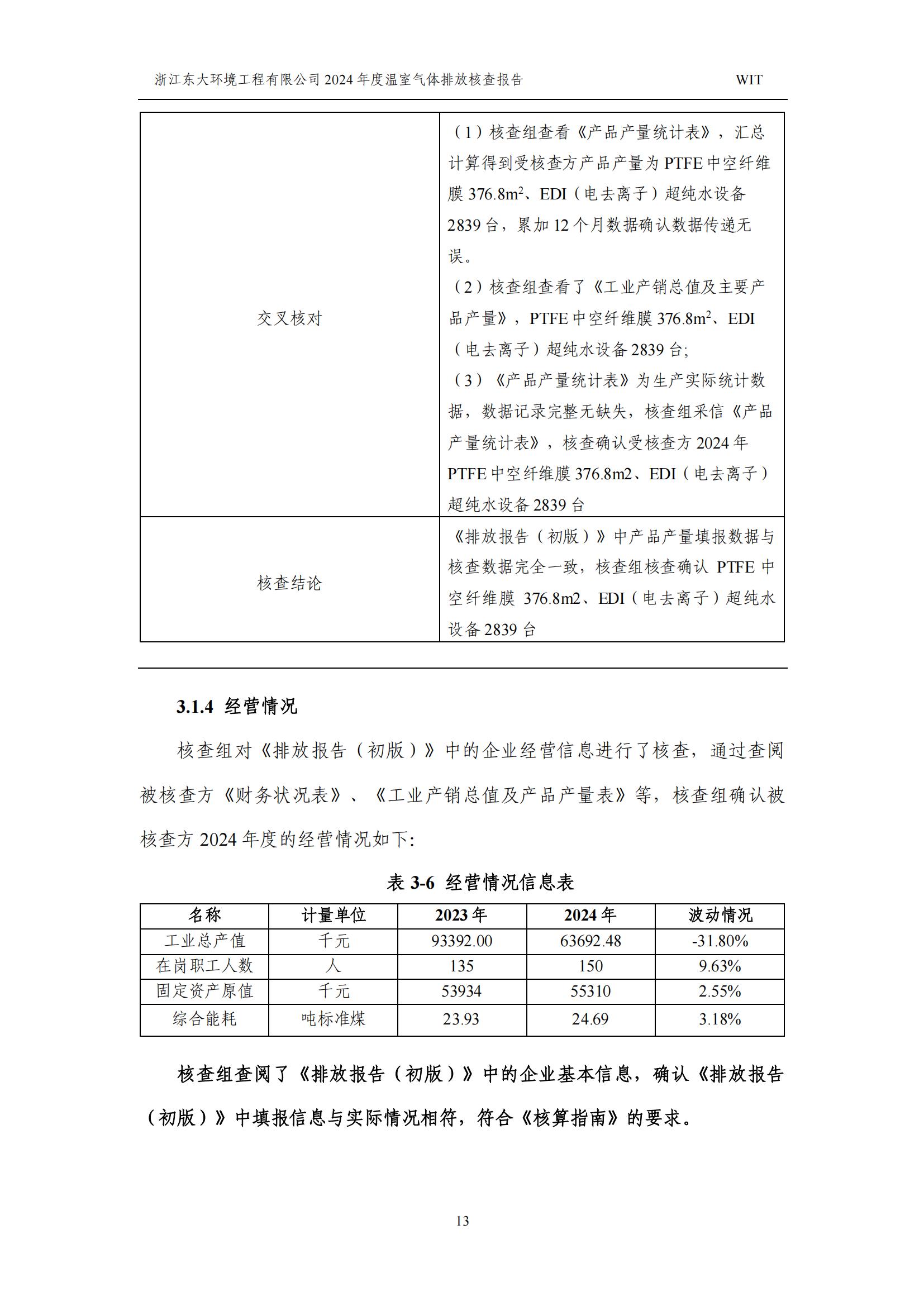 浙江東大環境工程有限公司2024年溫室氣體排放核查報告